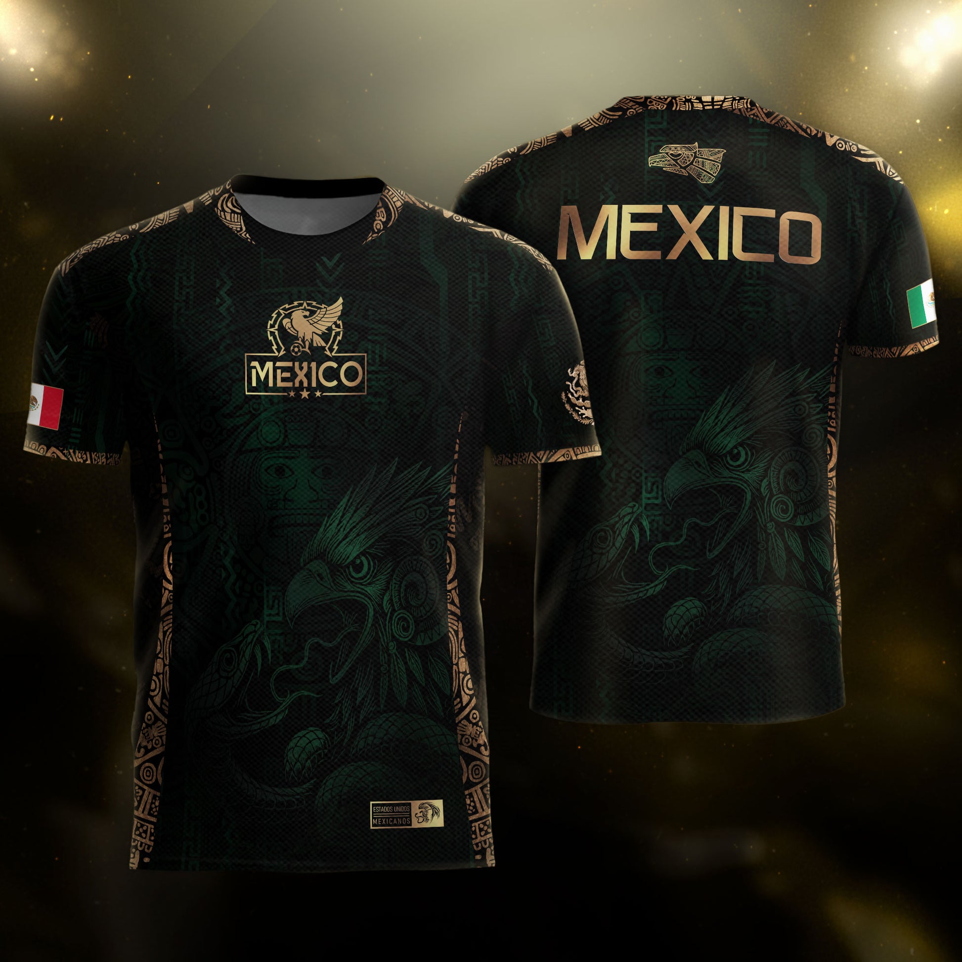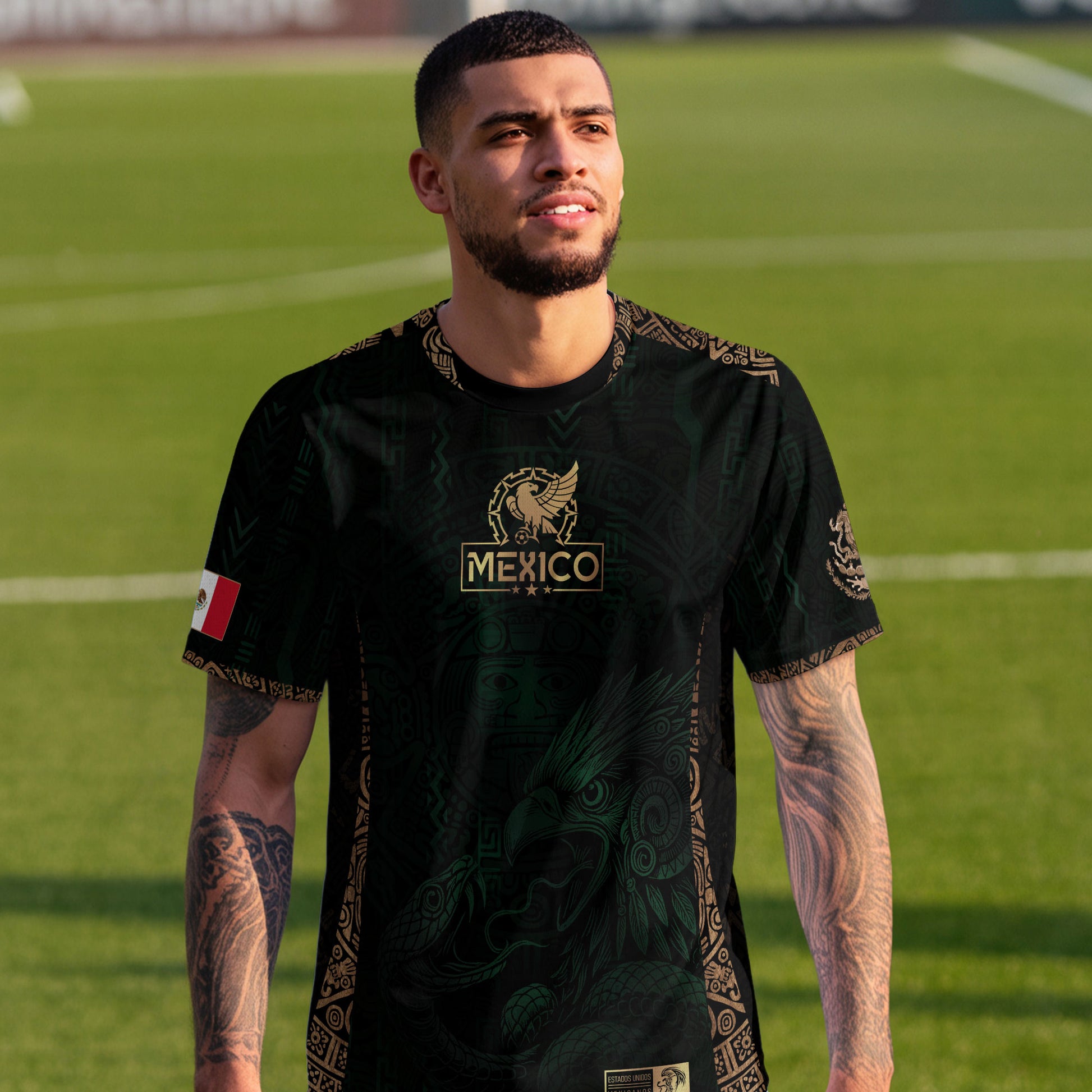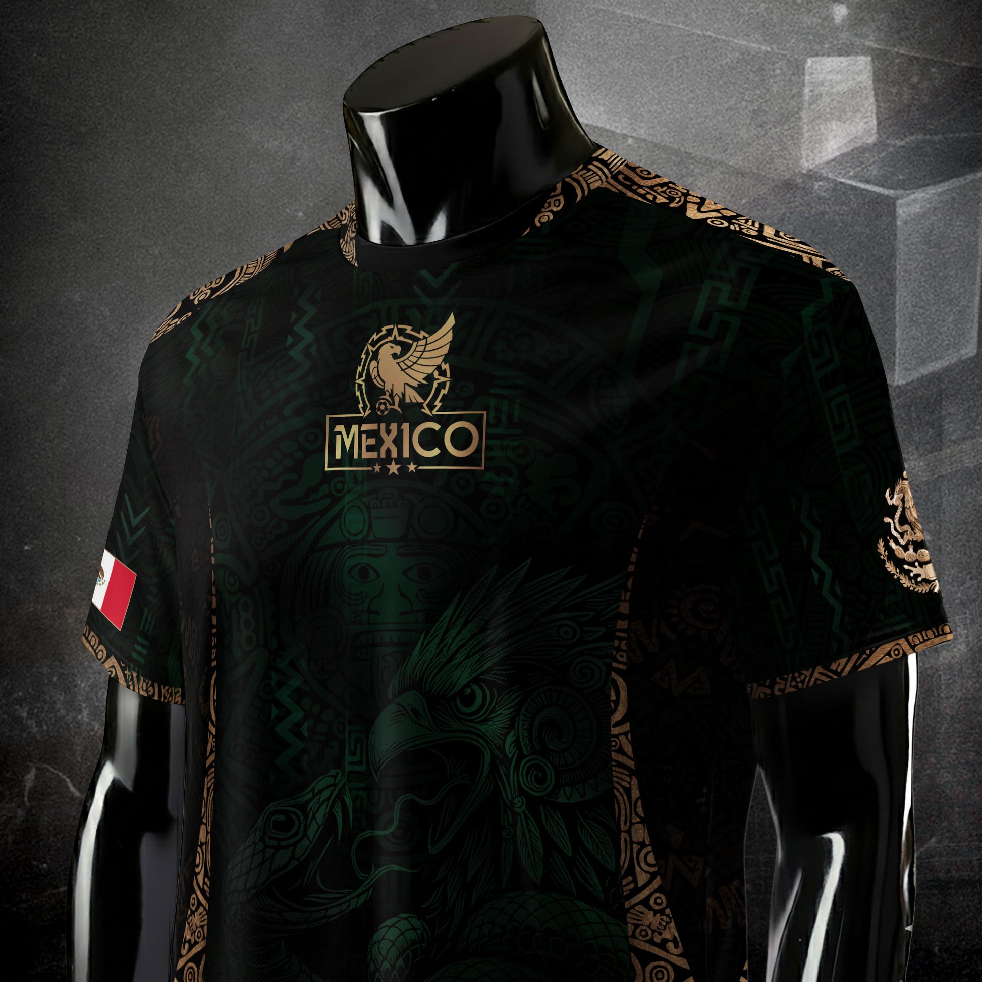 Unleash the Aztec warrior within — this green and gold soccer jersey embodies Mexico’s fearless spirit and ancient pride.