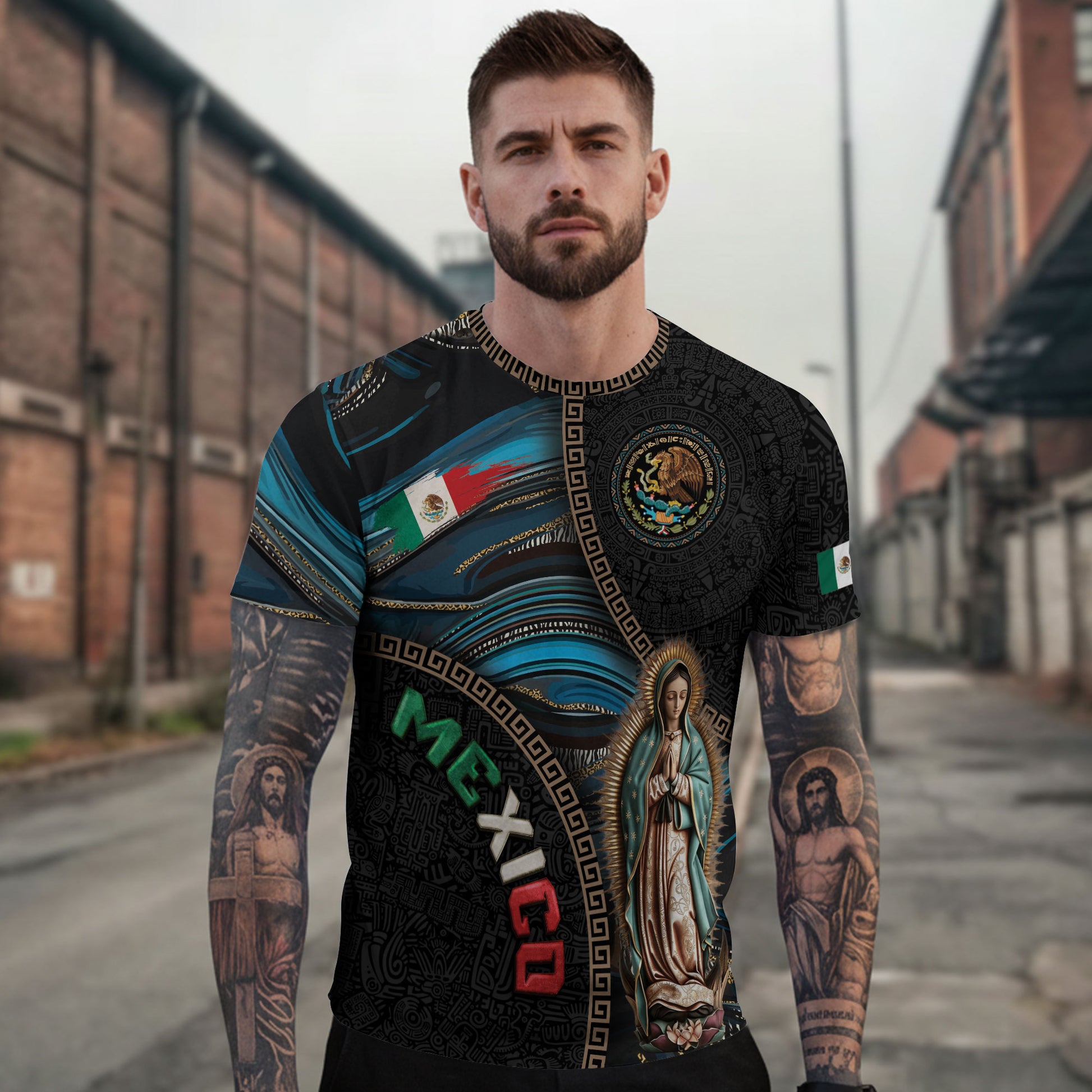 Celebrate Mexican faith and culture with this 3D Guadalupe Aztec shirt. The design blends traditional Aztec art with devotion, pride, and heritage.