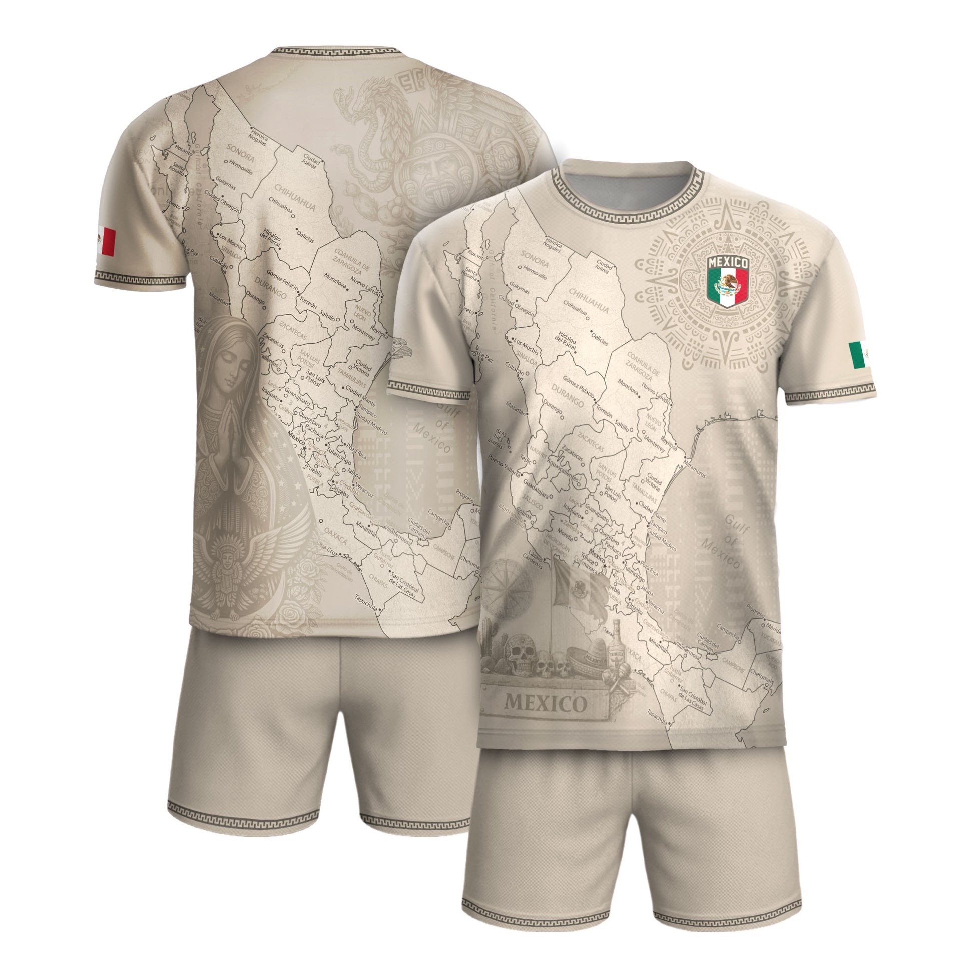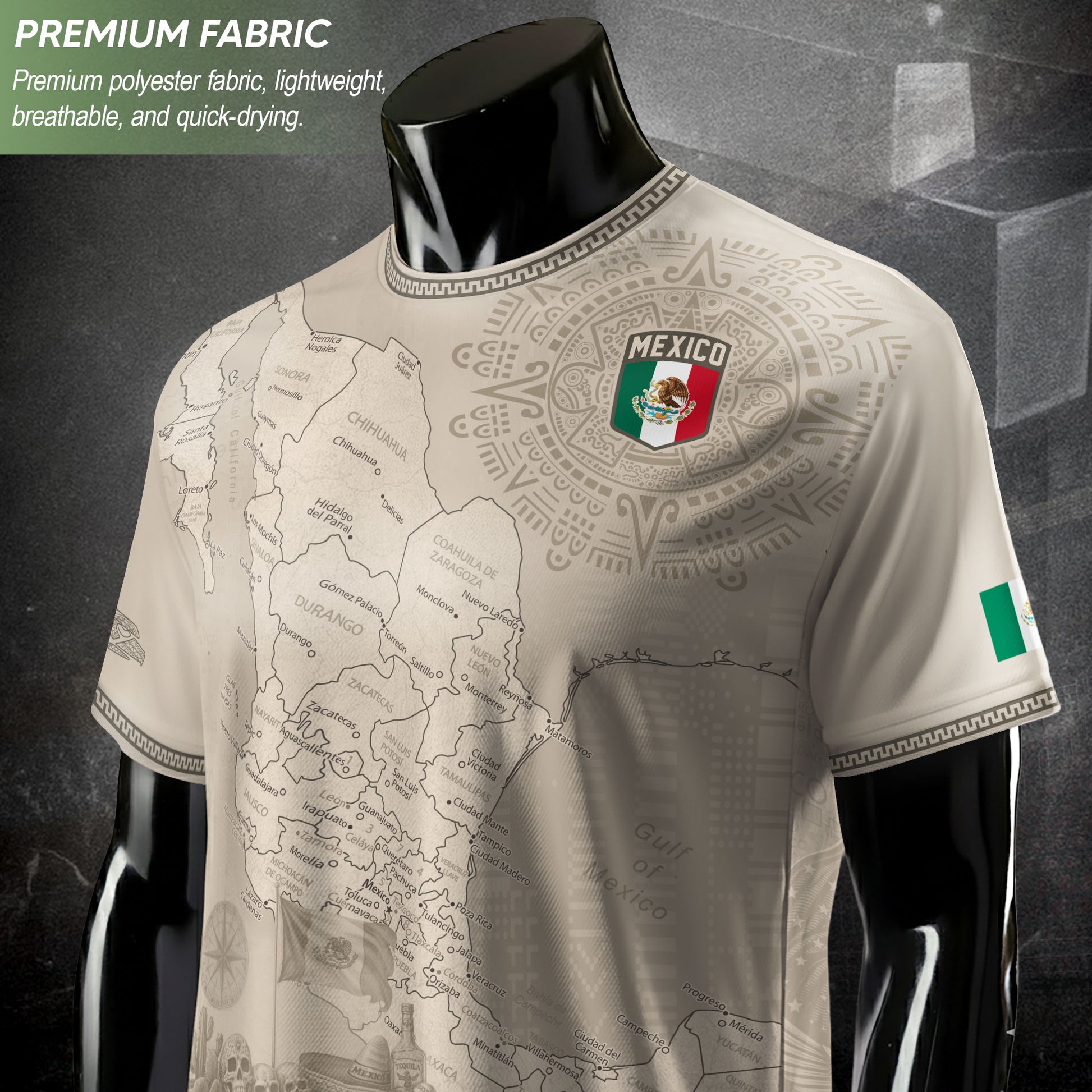 Mexico Heritage Beige Country Map Aztec Calendar Pride Graphic Soccer Jersey