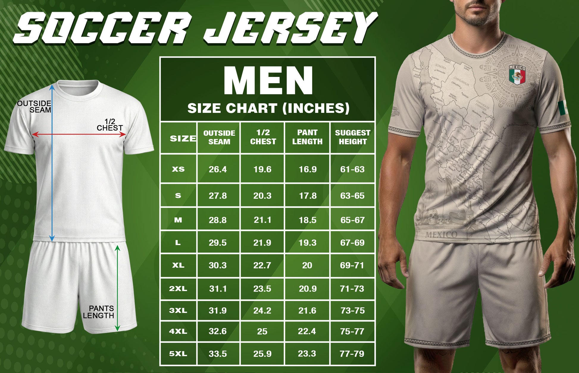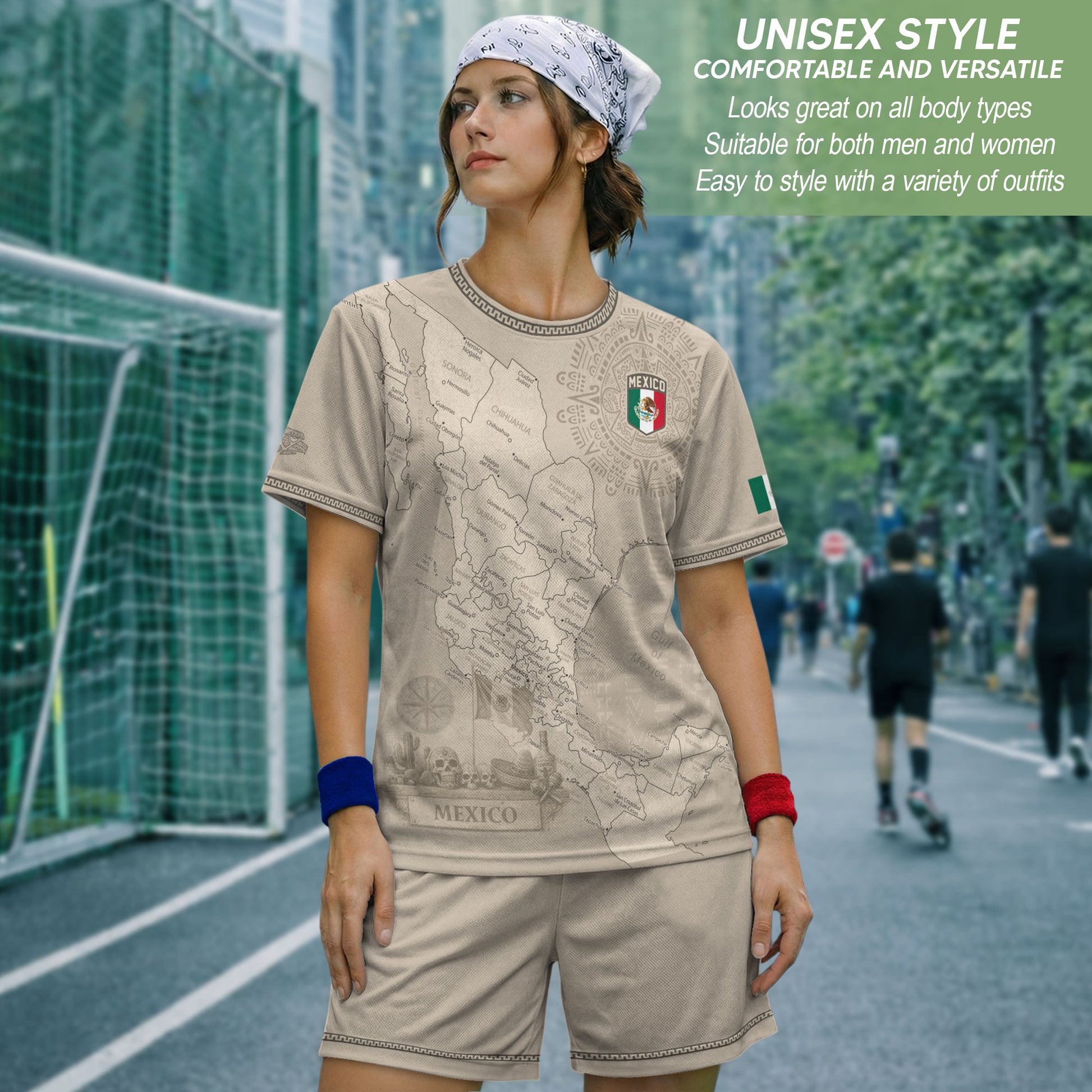 Honor Mexico’s ancient legacy with this Soccer Jersey showcasing the country map and Aztec Calendar as powerful heritage symbols. Made from high-quality polyester that is soft, lightweight, breathable, and quick-drying, it’s ideal for sports, school, and daily wear.