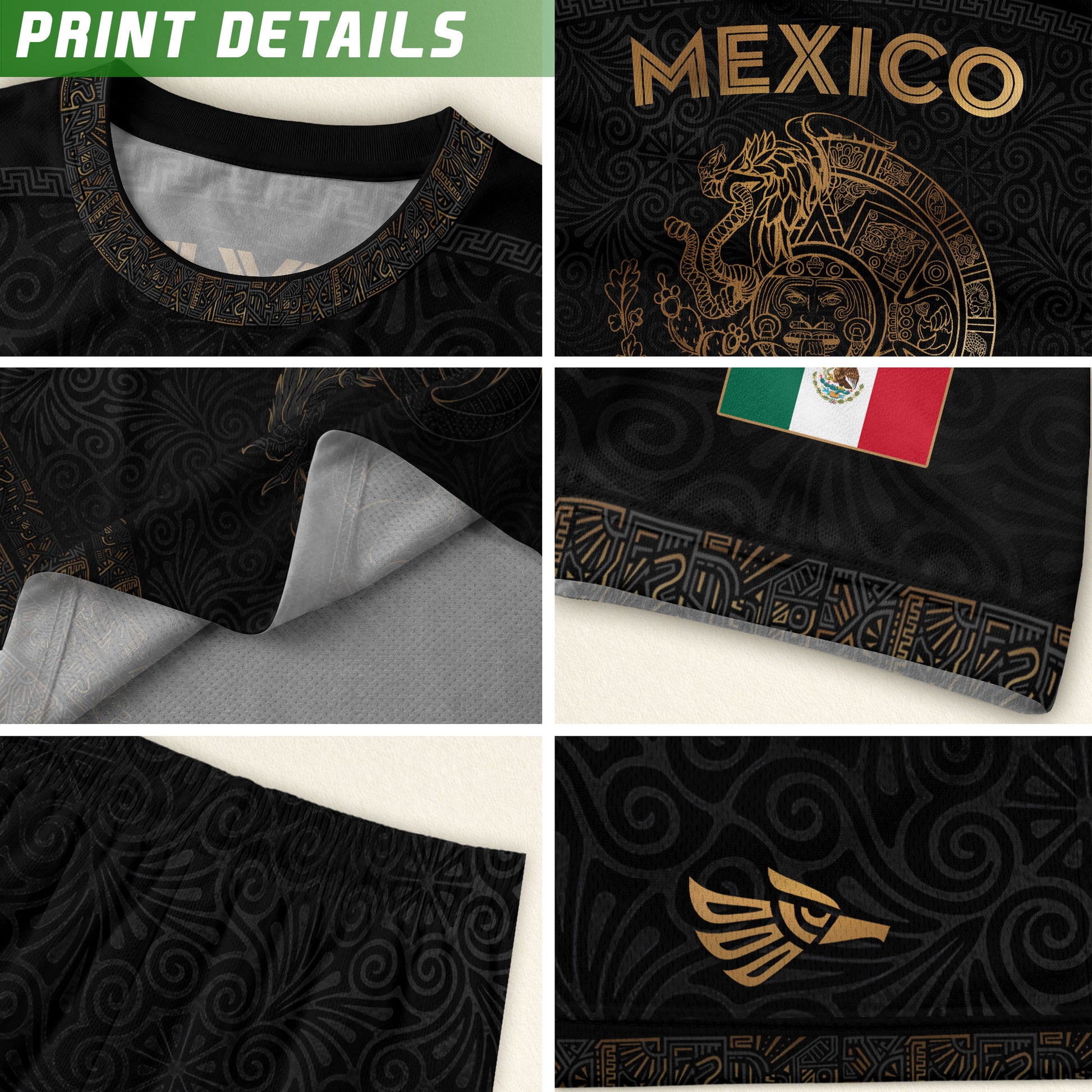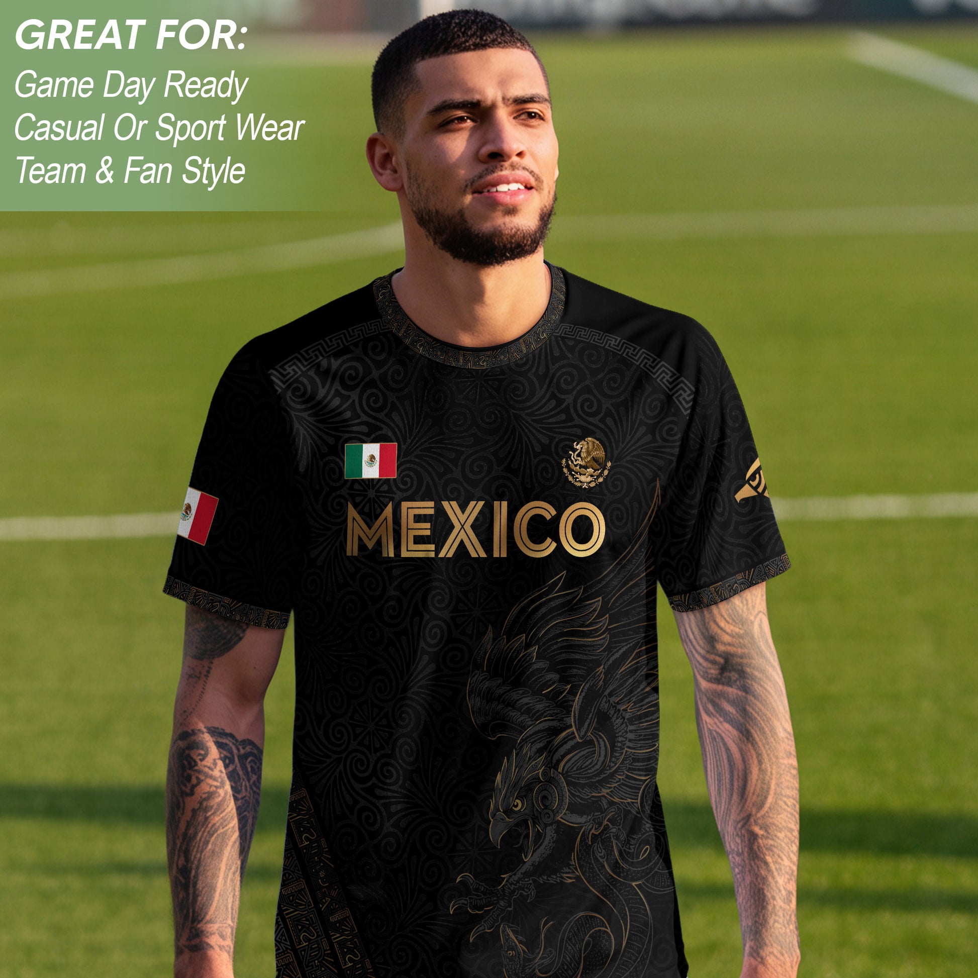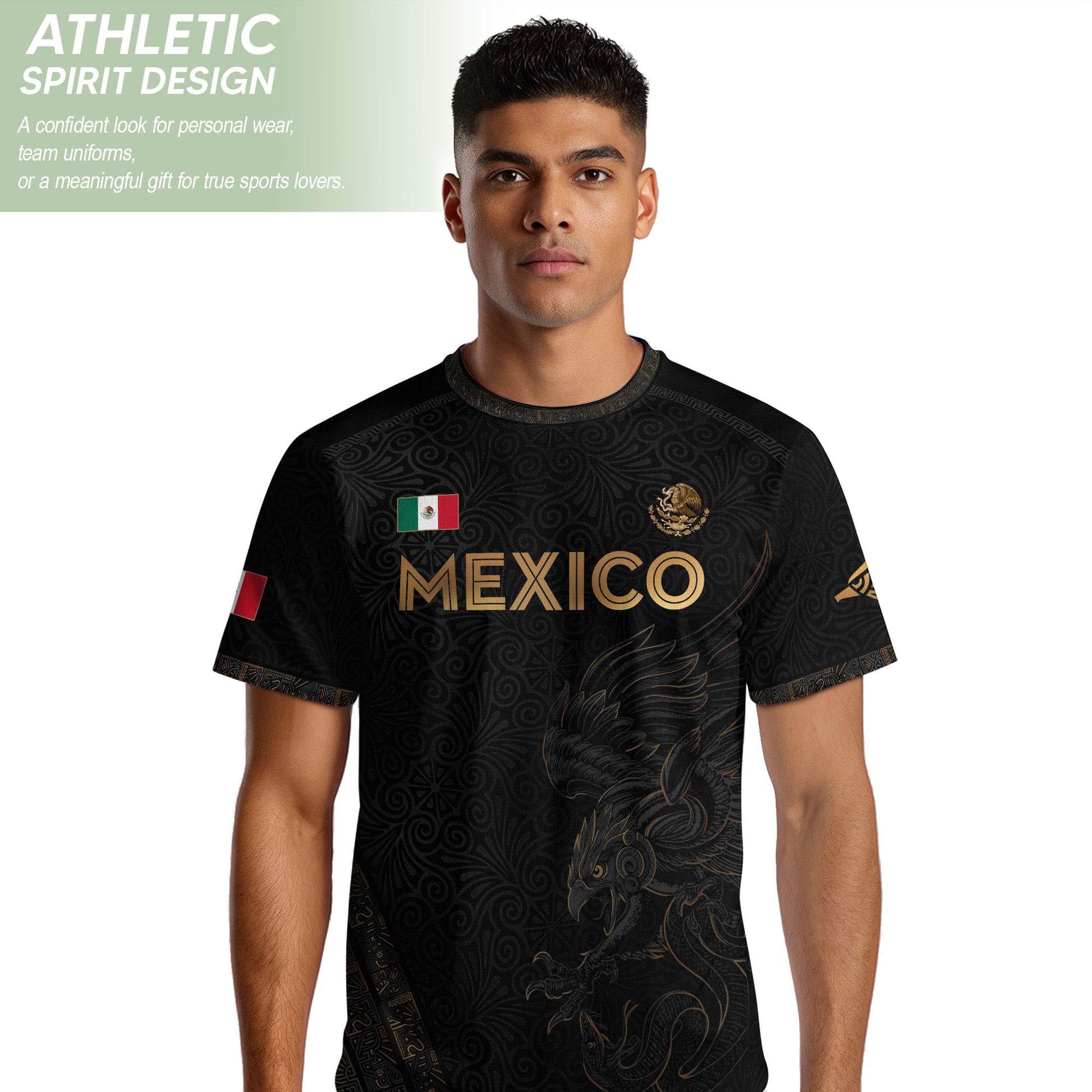 Mexico Heritage Black Gold Eagle Graphic Floral Pattern Pride Soccer Jersey