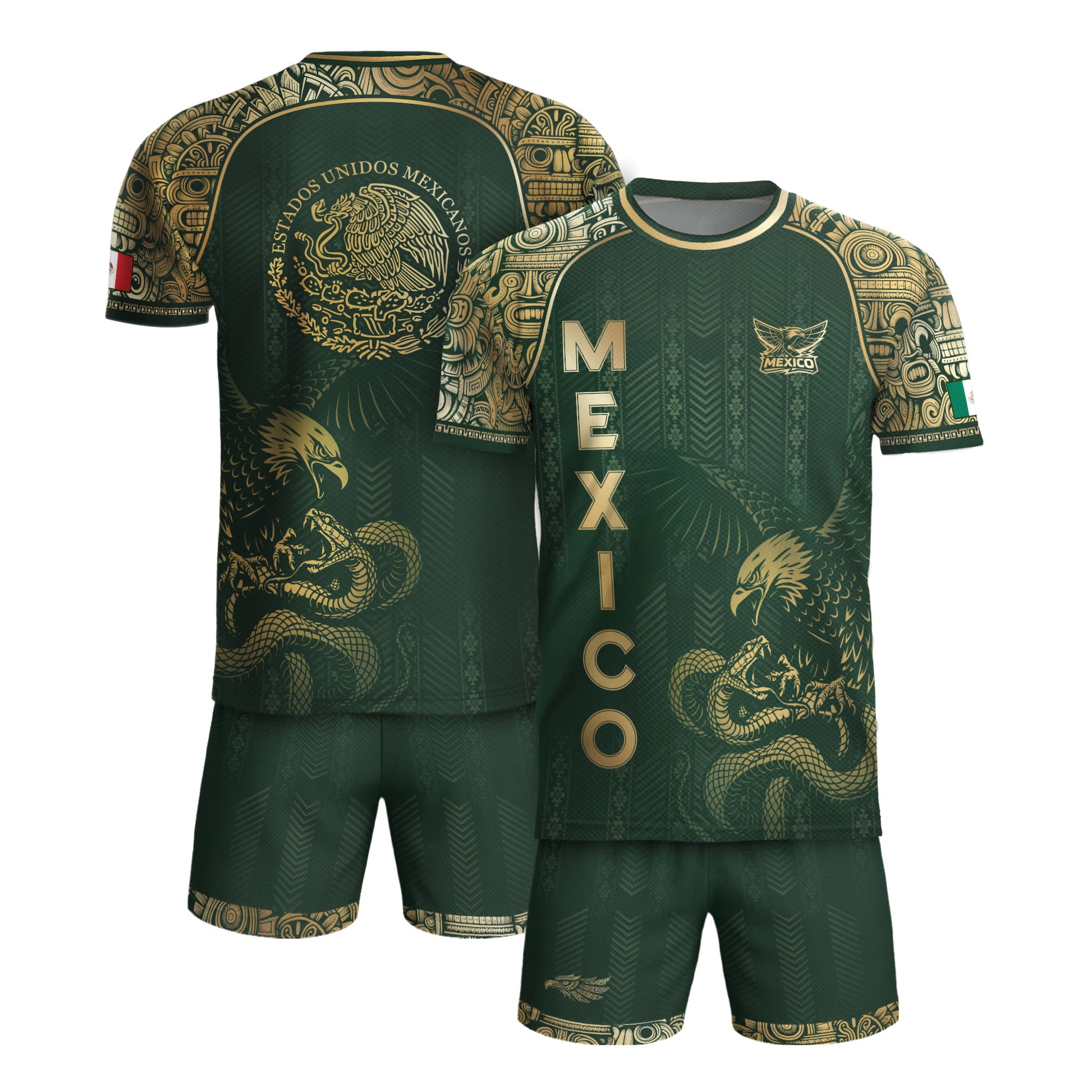 Mexico Heritage Green Gold Eagle Fighting Snake Mythological Soccer Jersey