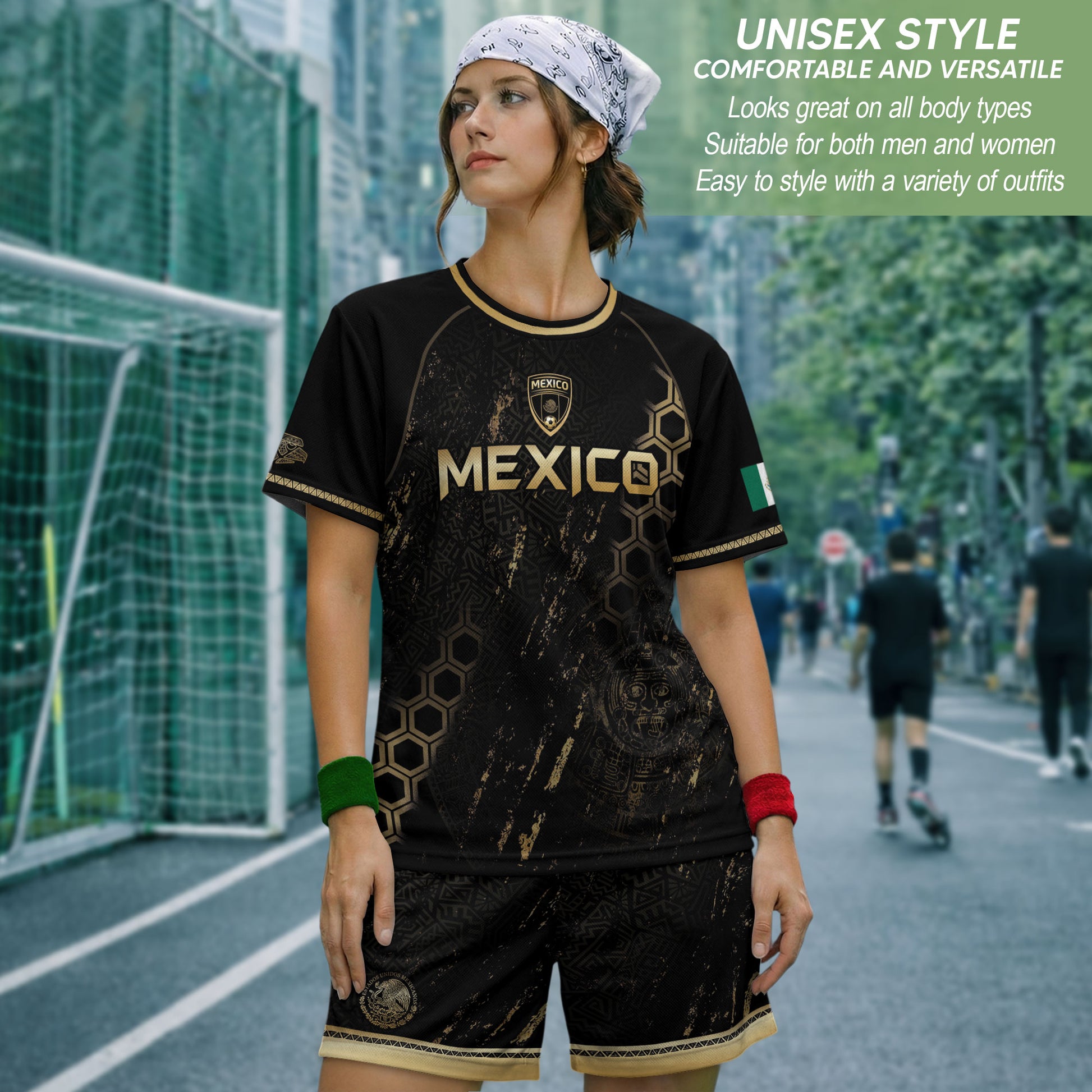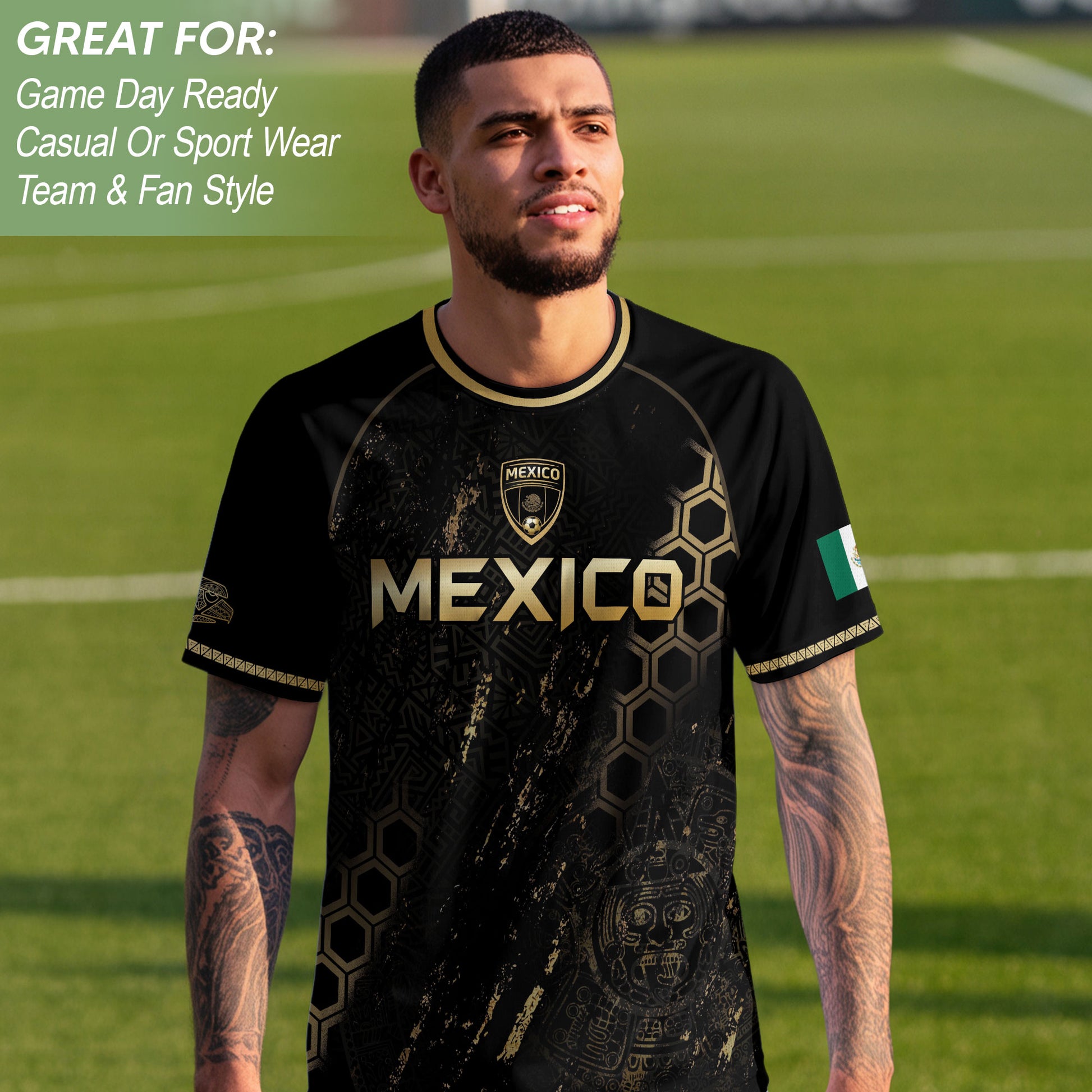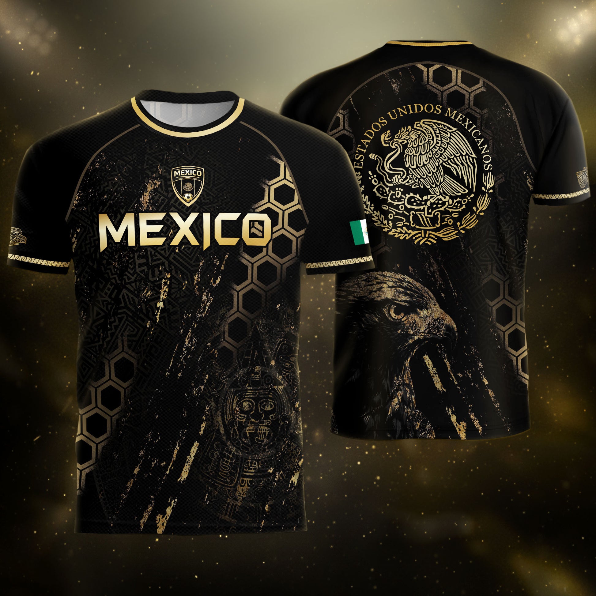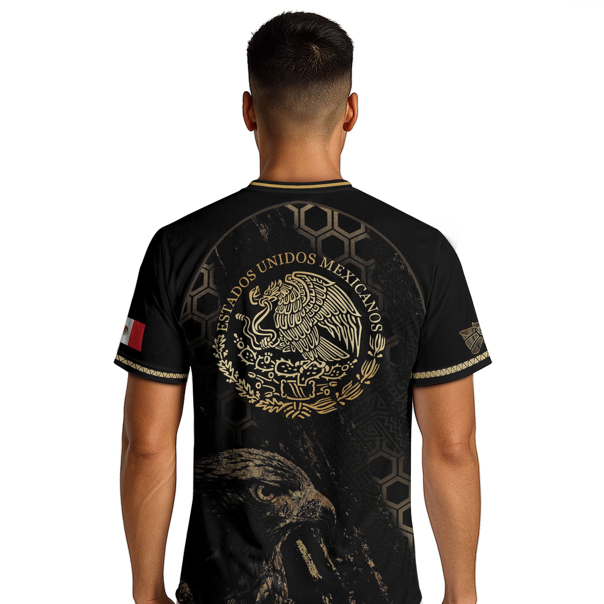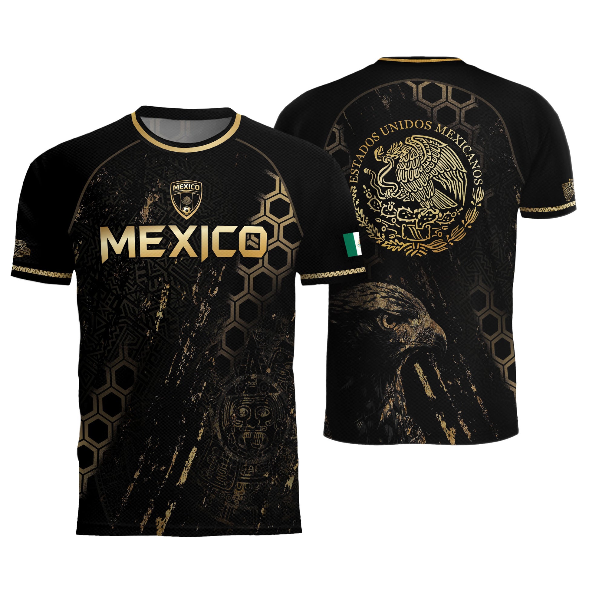 Mexico Heritage Orgullo Mexicano Black Gold Eagle Hexagon Pattern Soccer Jersey
