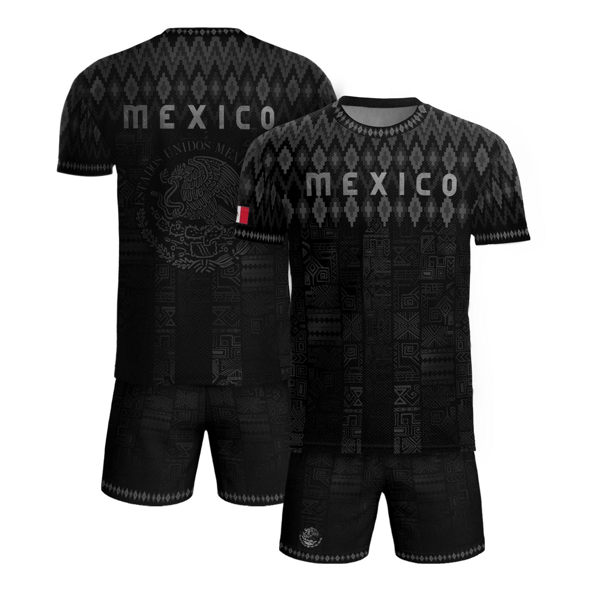 Mexico Heritage Orgullo Mexicano Black Silver Traditional Pattern Eagle Soccer Jersey