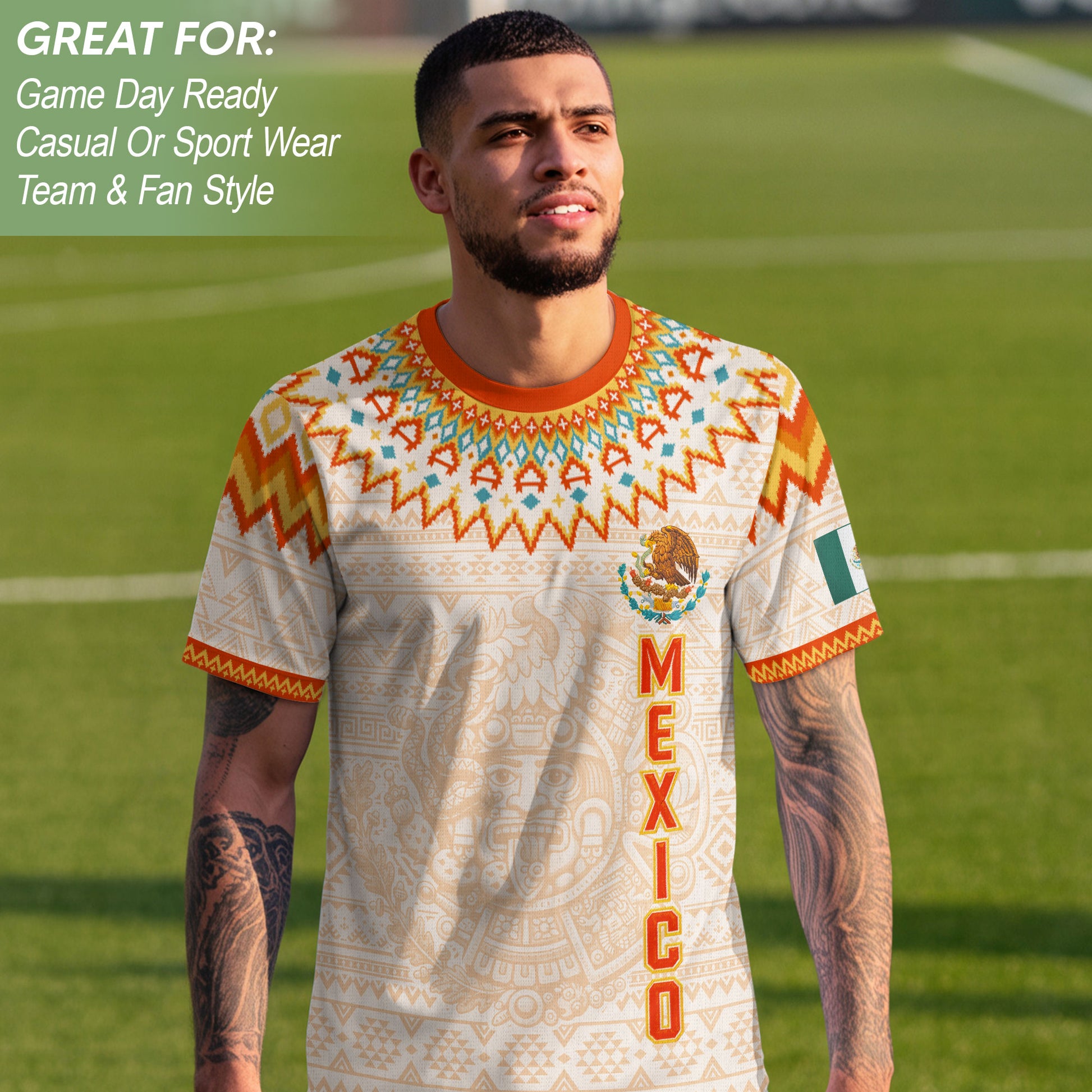 Mexico Heritage Soccer Jersey, Aztec Pattern Mexican Roots Design Jersey For Men