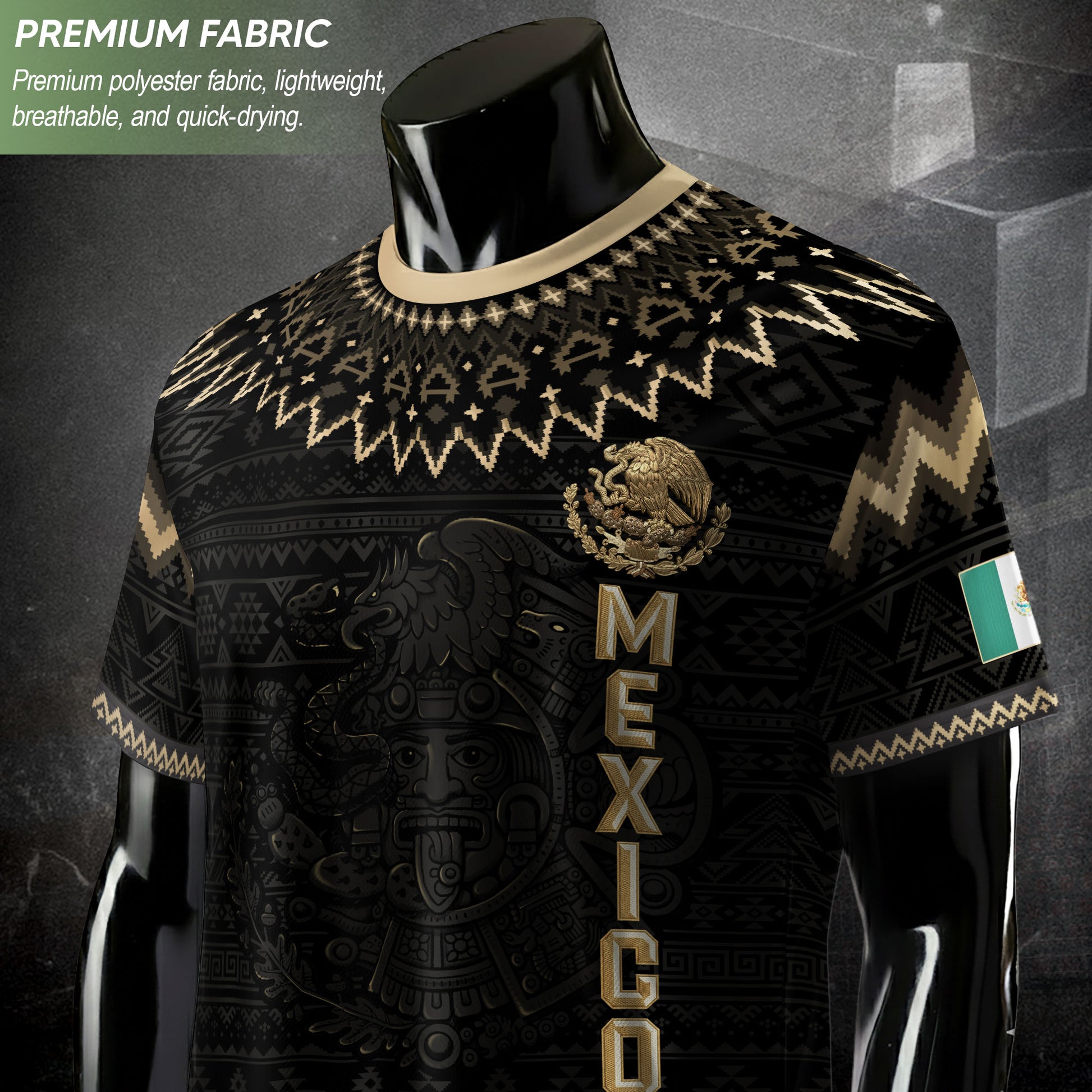 Mexico Heritage Soccer Jersey, Black Gold Aztec Pattern Design Jersey For Men