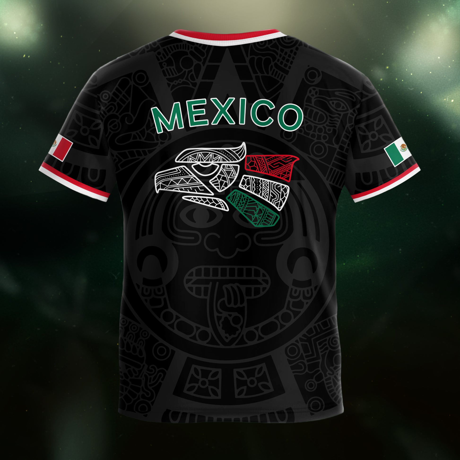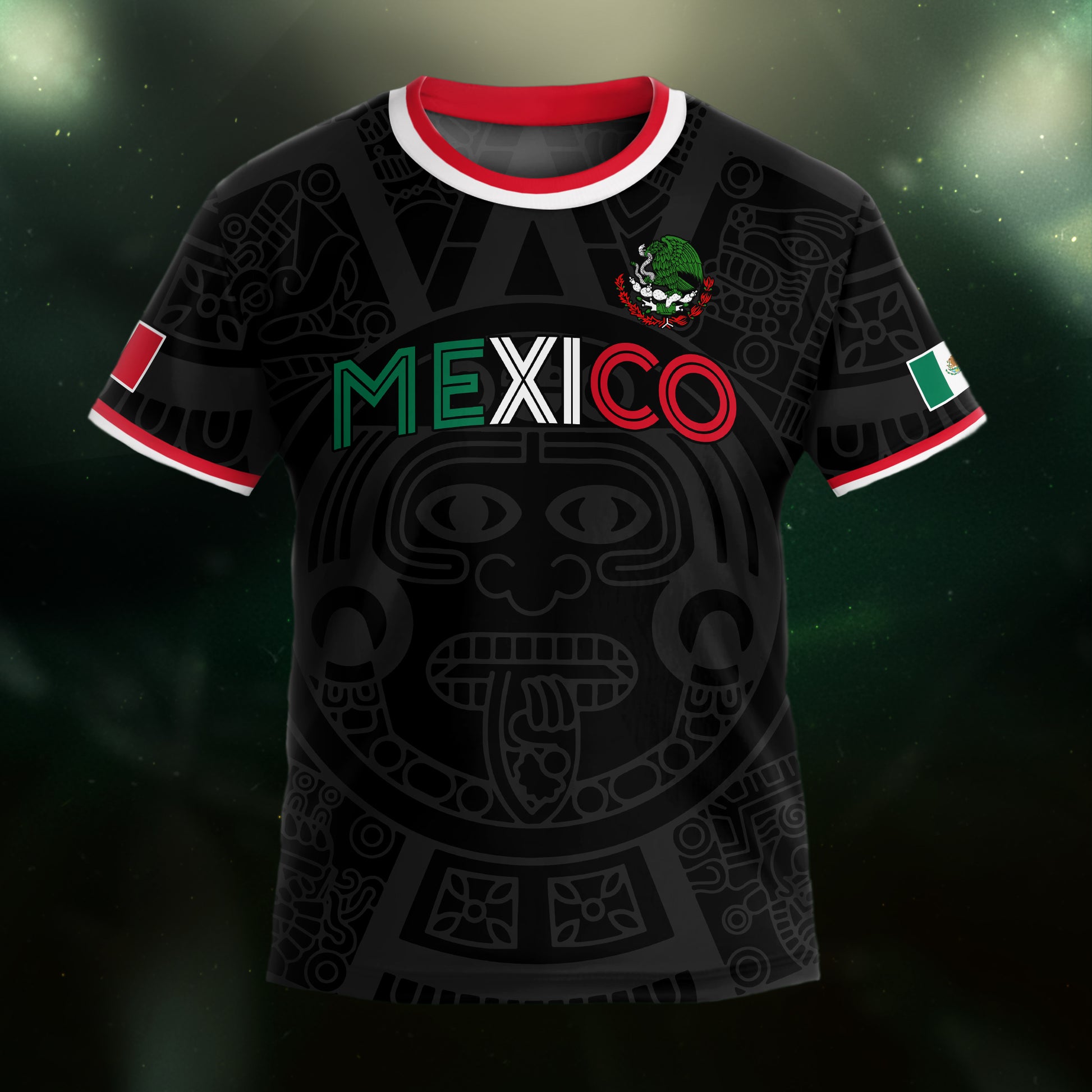 Mexico Kids Soccer Jersey Black Aztec Flag Colors Design