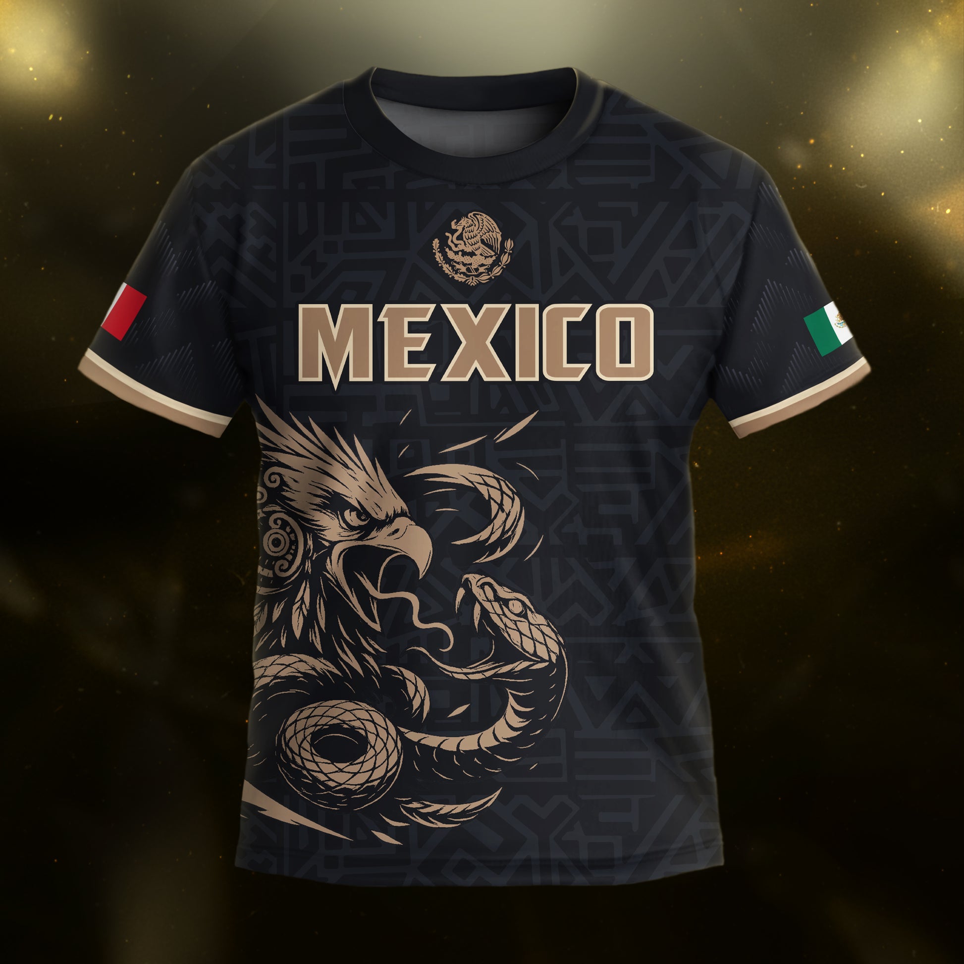 Mexico Kids Soccer Jersey Black Gold Aztec Eagle Serpent Design