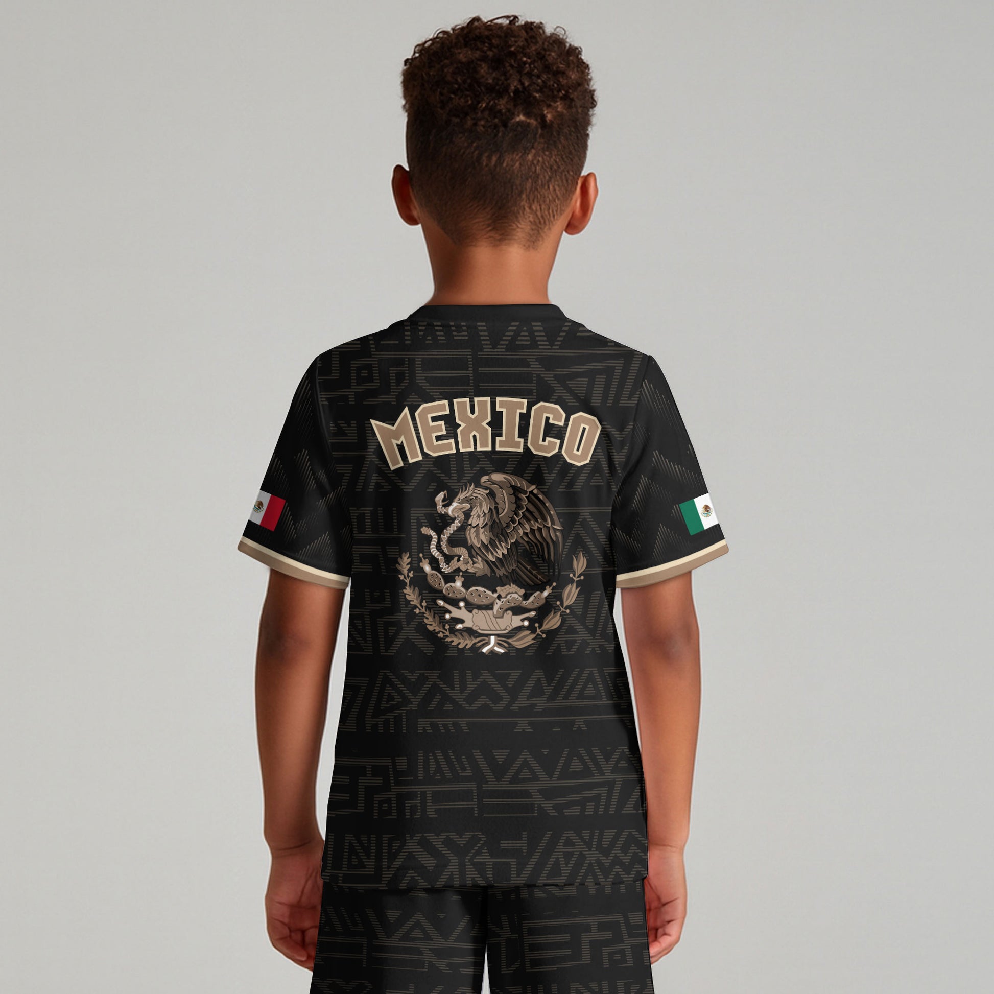 Mexico Kids Soccer Jersey Black Gold Aztec Warrior Eagle Design