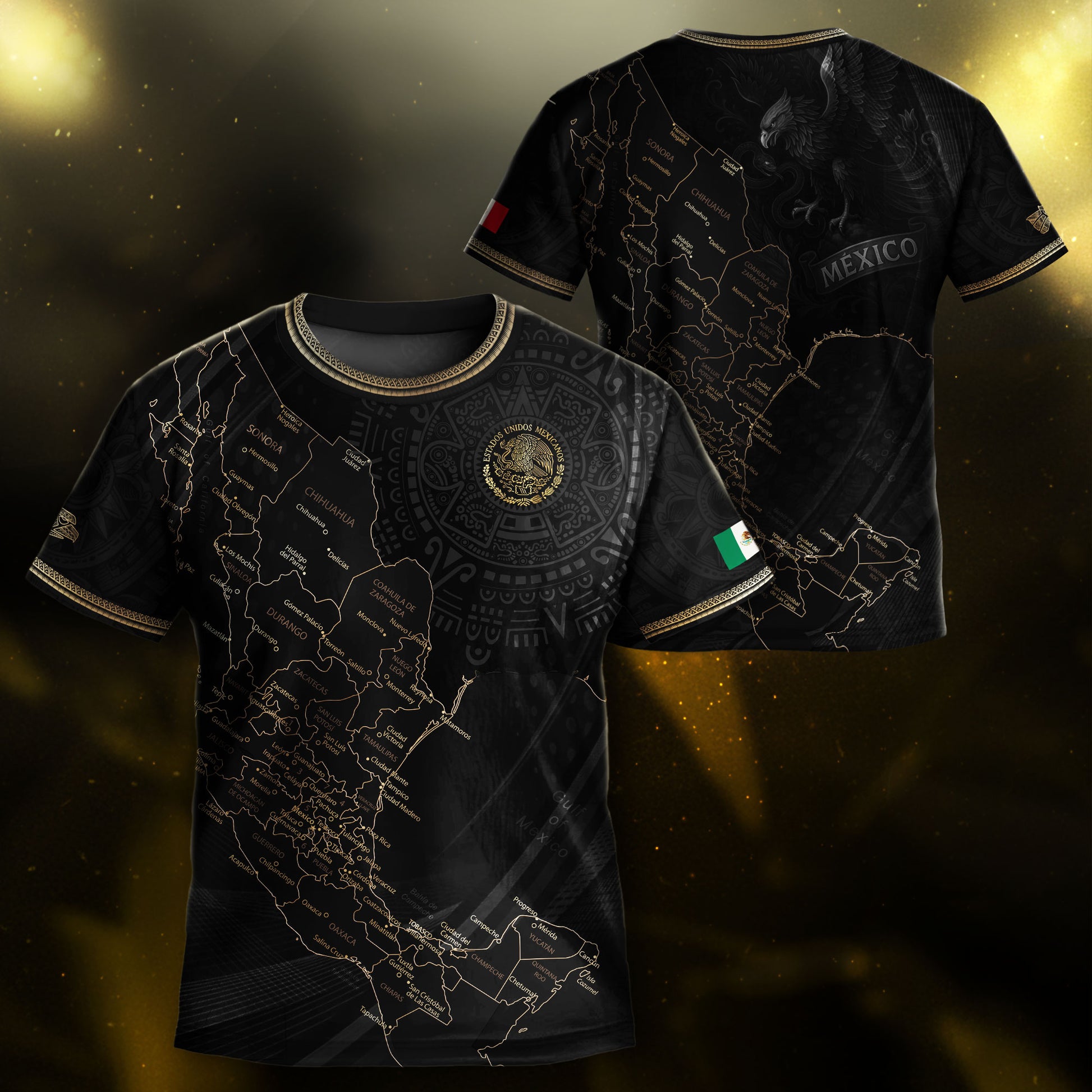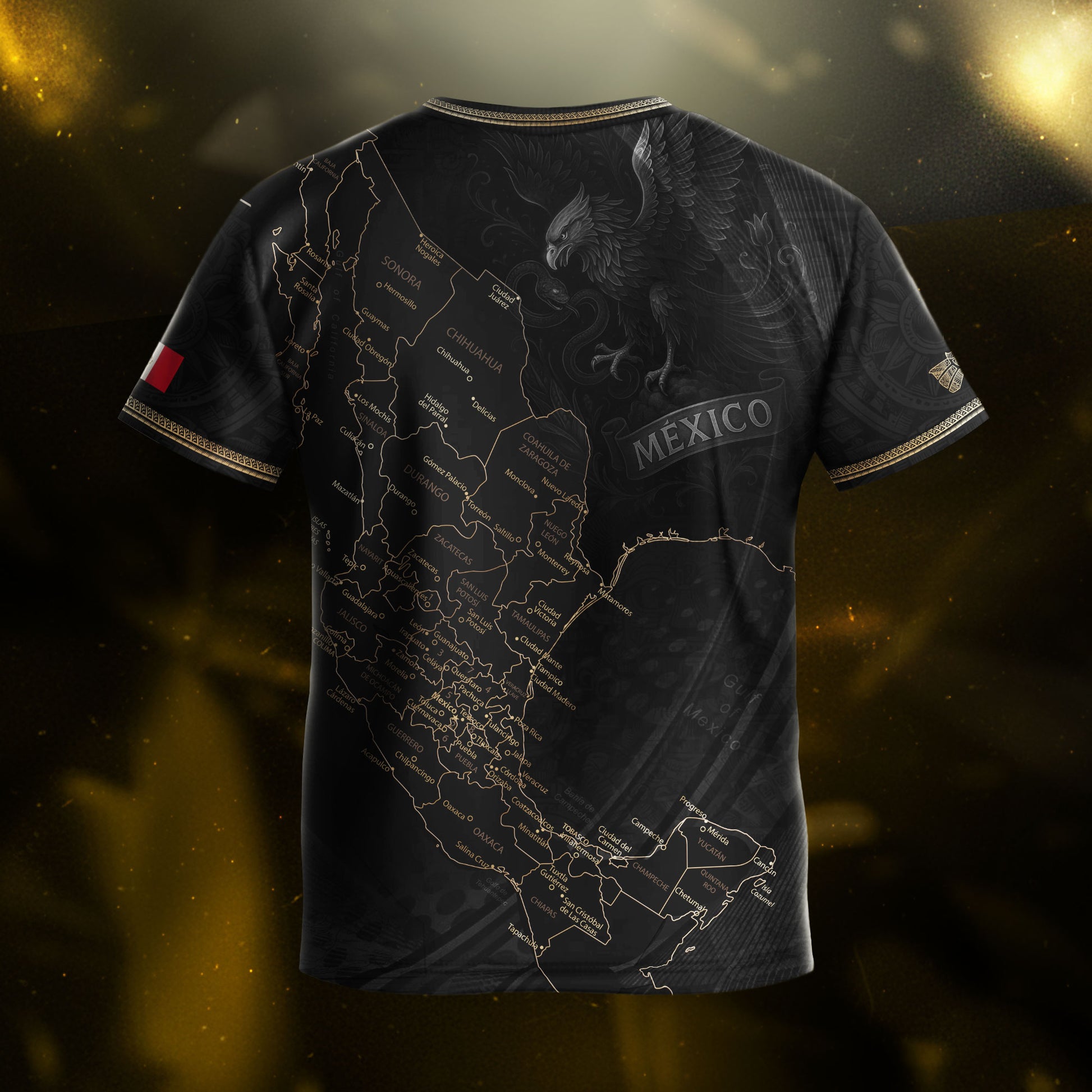 Mexico Kids Soccer Jersey Black Gold Map Aztec Pattern