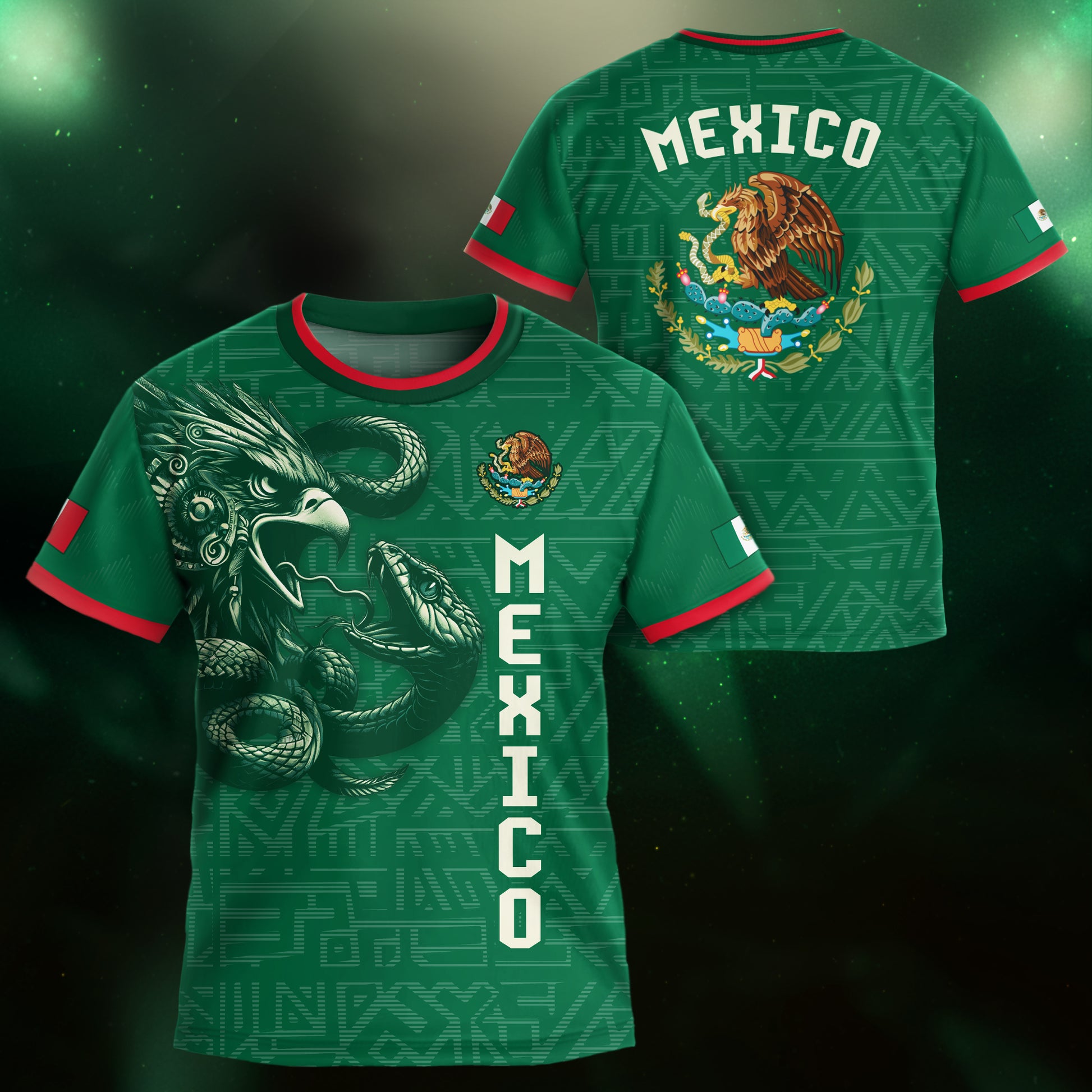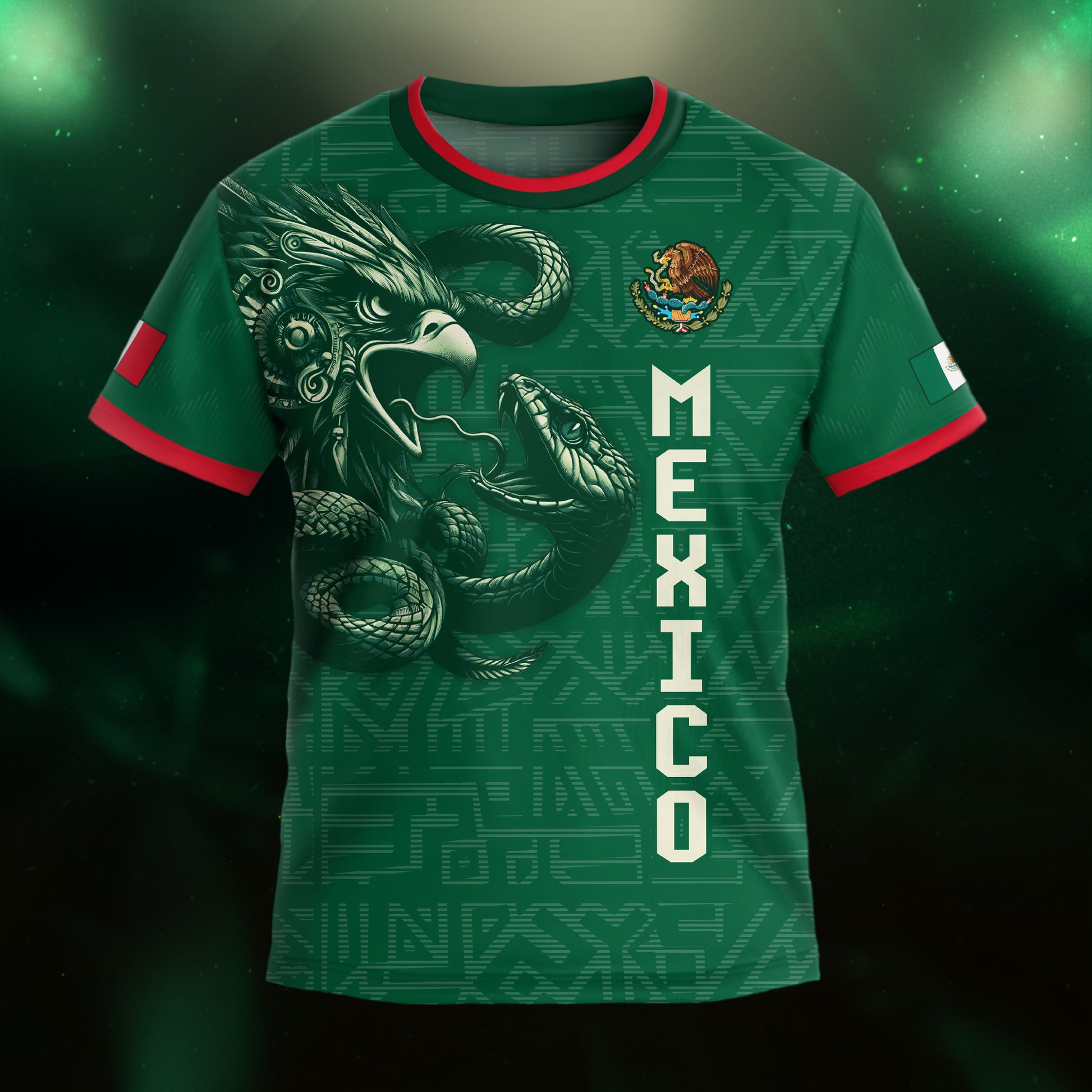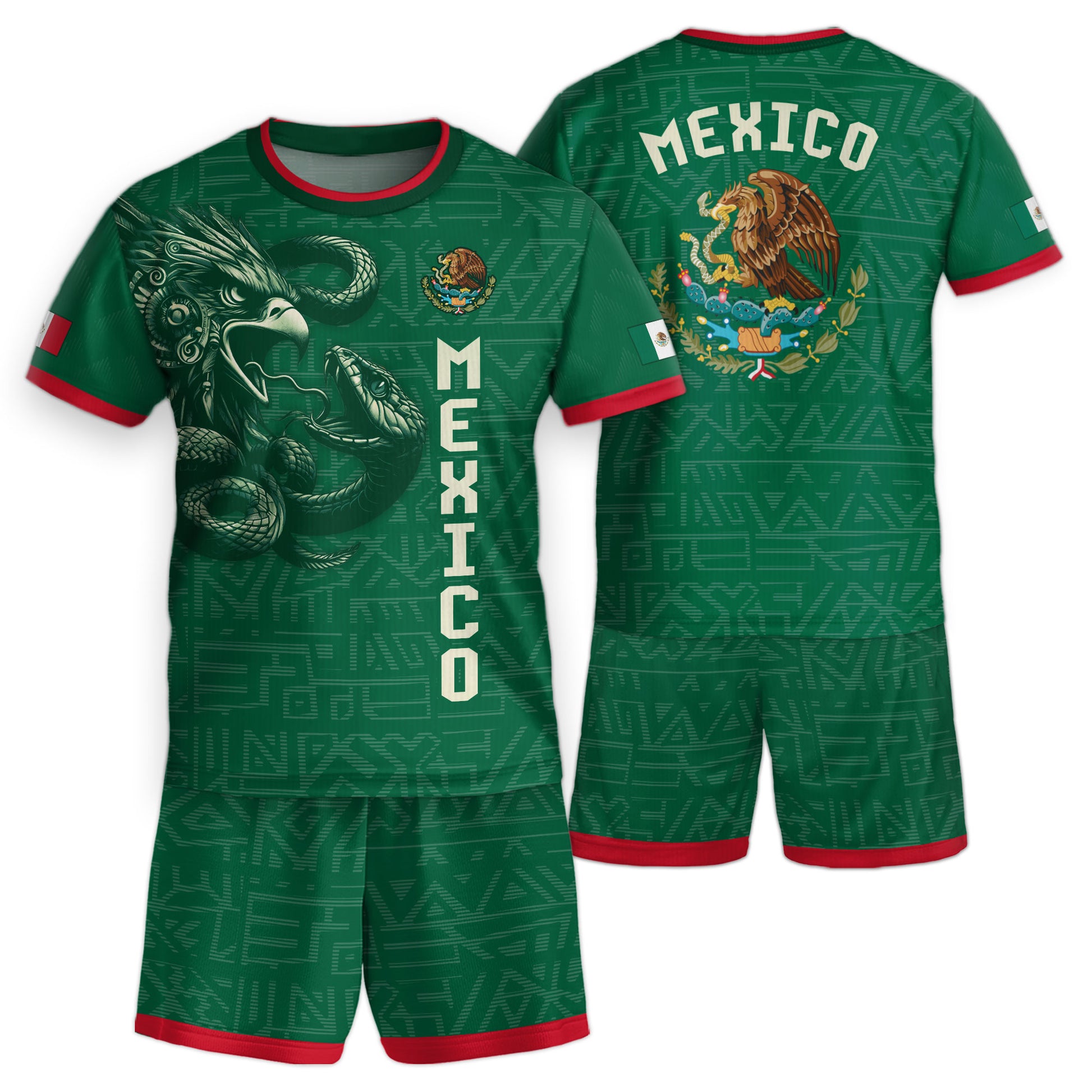 Mexico Kids Soccer Jersey Green Aztec Eagle Serpent Design