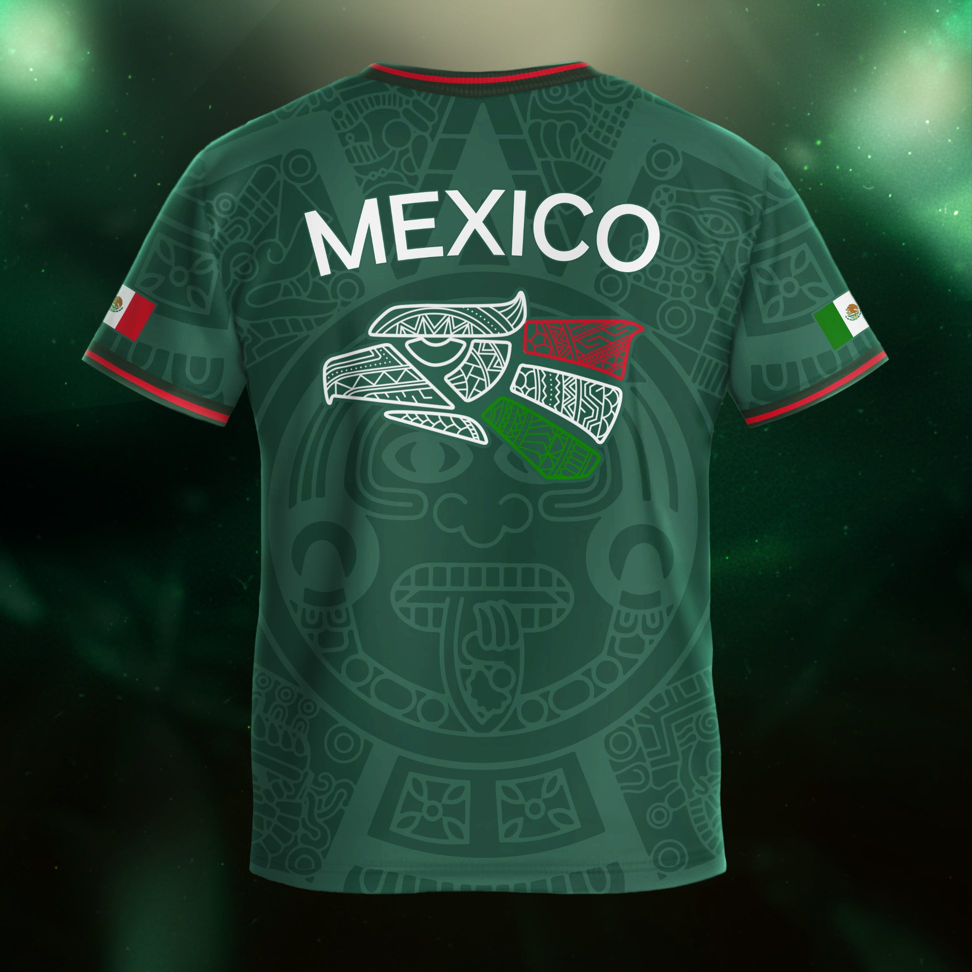 Mexico Kids Soccer Jersey Green Flag Colors Aztec Pattern Design