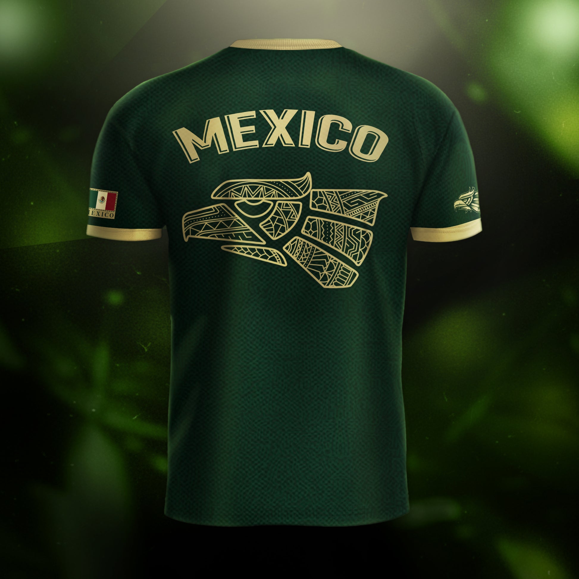 Show your Mexican pride with this beige Aztec-inspired jersey — elegant design, national emblem, and deep cultural roots.
