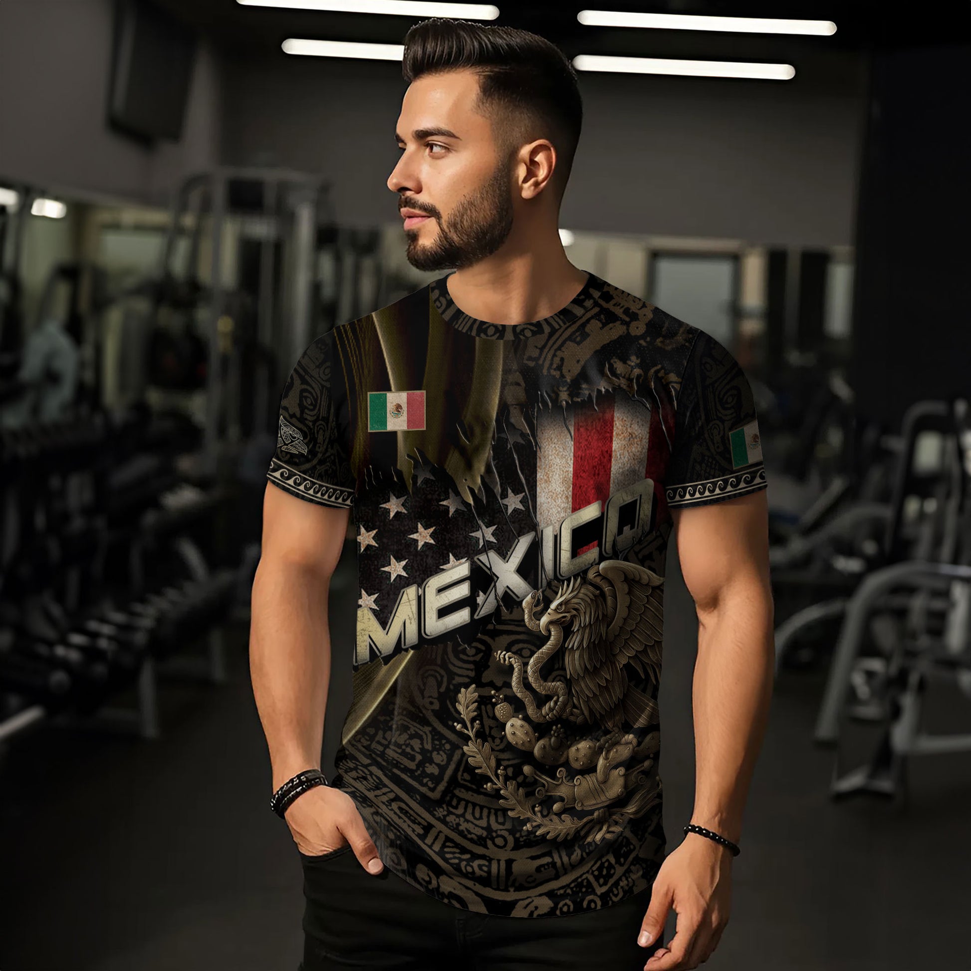 Mexico USA Flag Golden Eagle Aztec Pattern Heritage Unity Pride Power Shirt