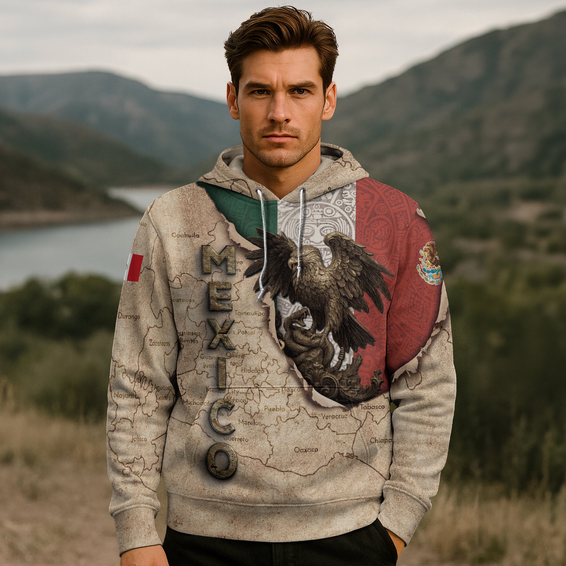 Vintage-inspired hoodie featuring Mexico’s map and national eagle emblem. A perfect blend of history, heritage, and timeless pride.