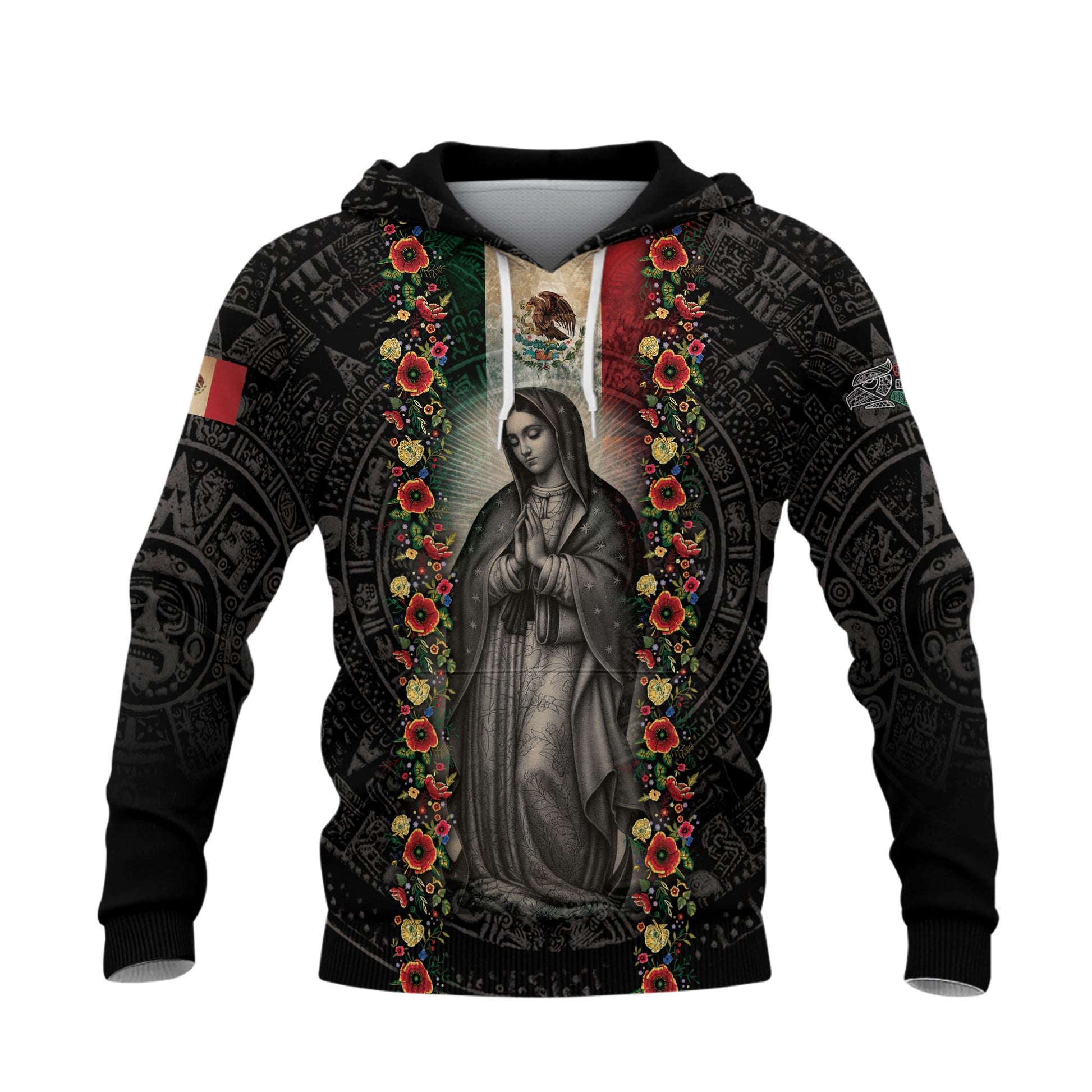 Virgin of Guadalupe Mexican Flag Aztec Faith Heritage Hoodie